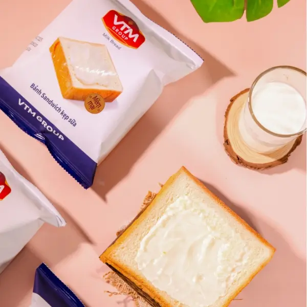 Bánh Sandwich VTM Kẹp Sữa là chiếc bánh mềm xốp với phần nhân sữa dịu ngọt, thơm béo, mang đến cảm giác nhẹ nhàng và dễ chịu trong từng miếng cắn. Đây là món ăn nhanh lý tưởng cho bữa sáng hoặc bữa phụ trong ngày – vừa tiện lợi, vừa giàu năng lượng, phù hợp cho cả trẻ em, học sinh, người đi làm.