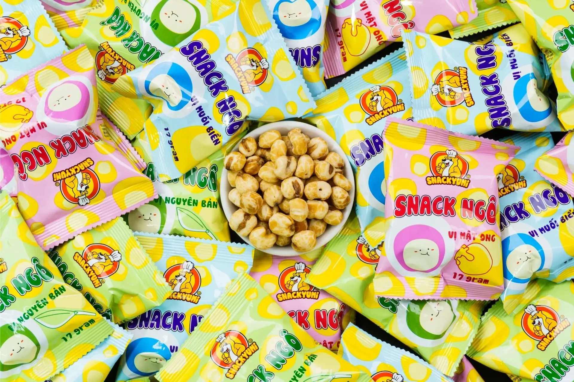 Với mong muốn mang đến cho khách hàng những trải nghiệm ăn vặt tuyệt vời nhất, KMH Food đã nghiên cứu và cho ra đời Snack Ngô Snackyumi ,